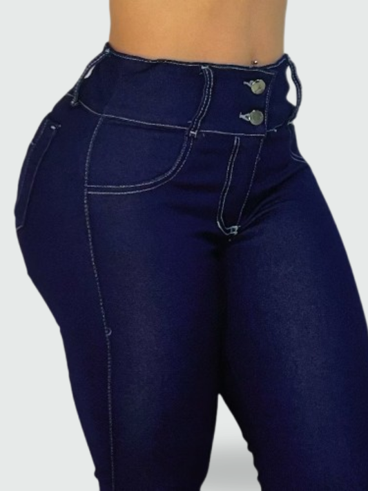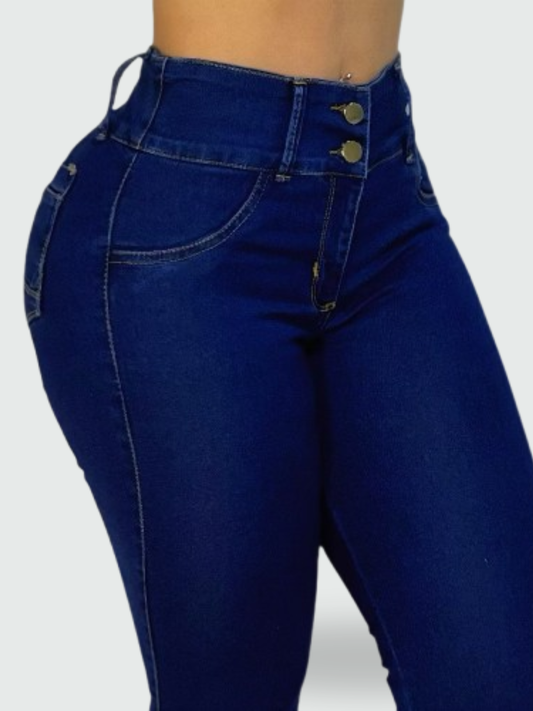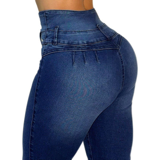 JEAN BOTA CAMPANA TIRO ALTO CORSET AZUL OSCURO