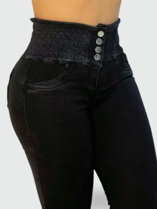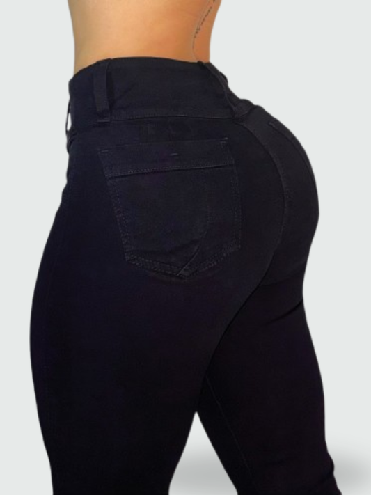 JEAN SKINNY TIRO ALTO LEVANTA COLA NEGRO CLÁSICO