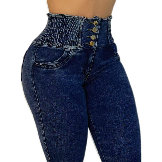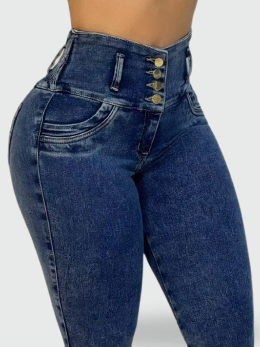 JEAN SKINNY TIRO ALTO LEVANTA COLA AZUL OSCURO